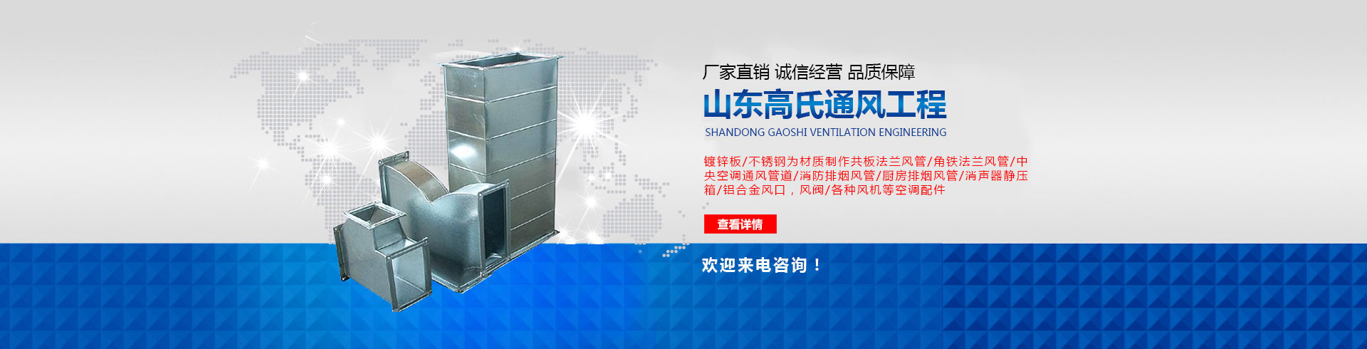 山東高氏通風(fēng)管道工程有限公司主要經(jīng)營(yíng)通風(fēng)管,酒店廚房排煙罩酒、黑白鐵加工已有多年,主要從事通風(fēng)管道設(shè)計(jì)、制作、安裝為一體的企業(yè),風(fēng)雨中我們?cè)跐?jì)南的通風(fēng)管道行業(yè)深受客戶的信賴,公司成立之初即確定一個(gè)高起點(diǎn),公司擁有專用通風(fēng)管生產(chǎn)線,各種設(shè)備齊全。 公司產(chǎn)品主要有,以鍍鋅板、不銹鋼為材質(zhì)制作共板法蘭風(fēng)管,角鐵法蘭風(fēng)管,空調(diào)通風(fēng)管道,消防排煙風(fēng)管,廚房排煙風(fēng)管,消聲器,靜壓箱,鋁合金風(fēng)口,風(fēng)閥,各種風(fēng)機(jī),等空調(diào)配件。 公司擁有高素質(zhì)管理人員,業(yè)務(wù)素質(zhì)高精、管理能力強(qiáng),展望未來(lái),任重而道遠(yuǎn),我們?cè)概c各業(yè)同仁一道,相互進(jìn)步,共同發(fā)展,服務(wù)回饋社會(huì),...